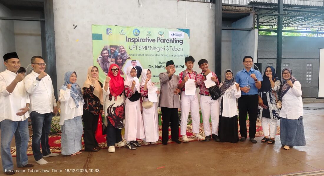 TUBAN – Dunia pendidikan saat ini tidak lagi hanya berganda pada interaksi guru dan murid di dalam kelas. Menyadari hal tersebut, UPT SMP Negeri 3 Tuban mengambil langkah progresif dengan menggelar kegiatan parenting inspiratif bertajuk "Anak Hebat Berasal dari Orang Tua yang Terlibat" . Acara yang berlangsung pada Kamis, 18 Desember 2025 di Lapangan Indoor Polres Tuban ini menghadirkan tokoh motivator pendidikan nasional, Dr. Nafik Palil, M.Pd